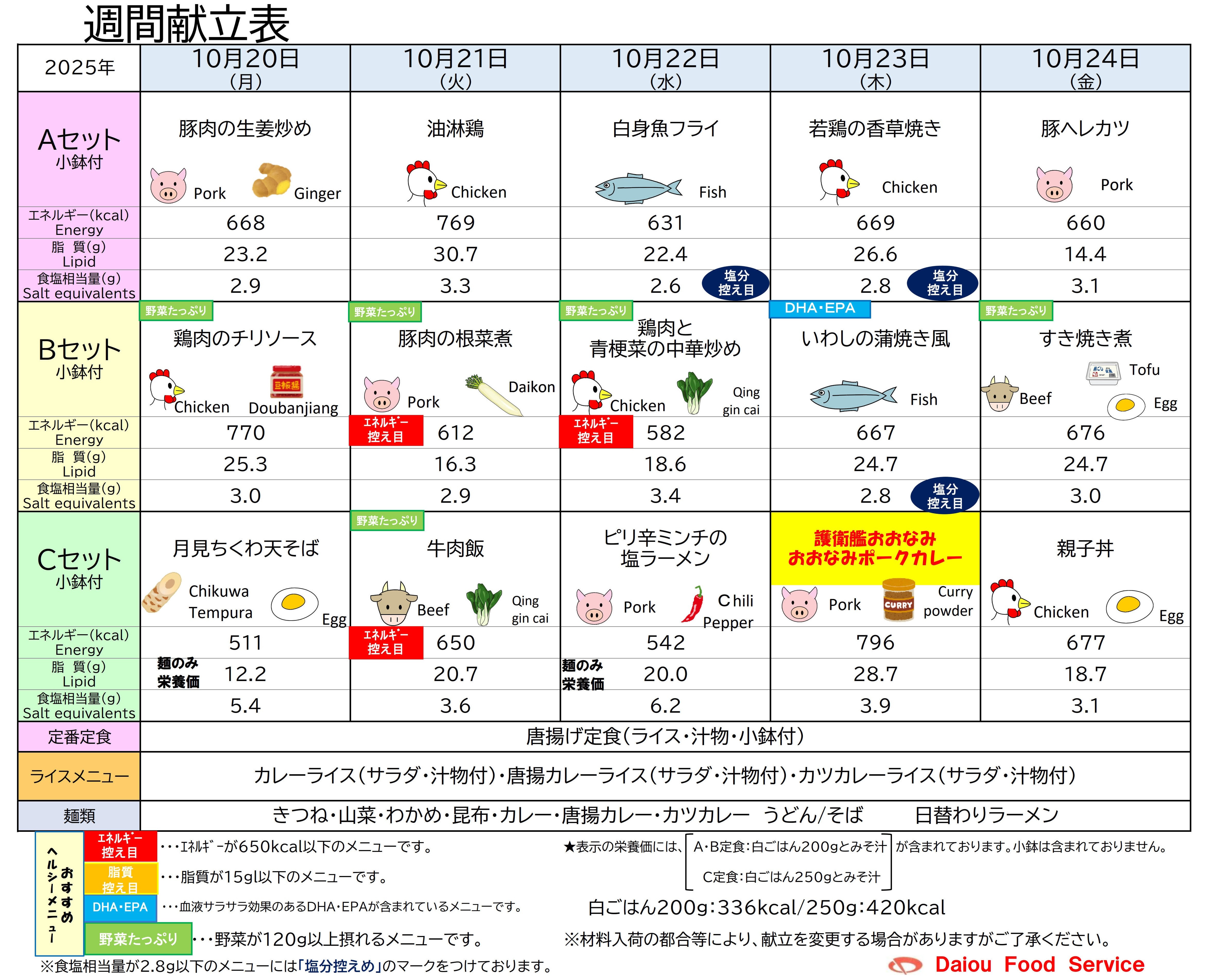 10月23日(木)は、おおなみポークカレー(護衛艦おおなみ)です。